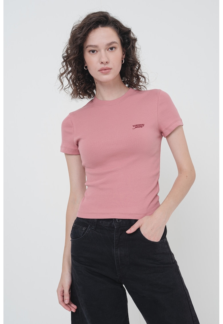 Caracteristici Culoare: roz prafuit Imprimeu: logo Material: bumbac Croiala: slim fit Model: decolteu la baza gatului Lungime maneca: maneca scurta Detalii: logo brodat Compozitie Exterior: 95% bumbac