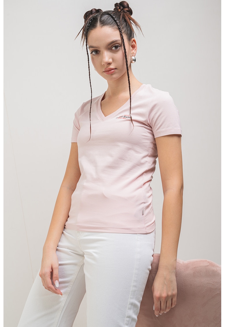 Caracteristici Culoare: roz deschis Imprimeu: logo Material: bumbac Croiala: slim fit Model: in v Lungime maneca: maneca scurta Compozitie Exterior: 95% bumbac