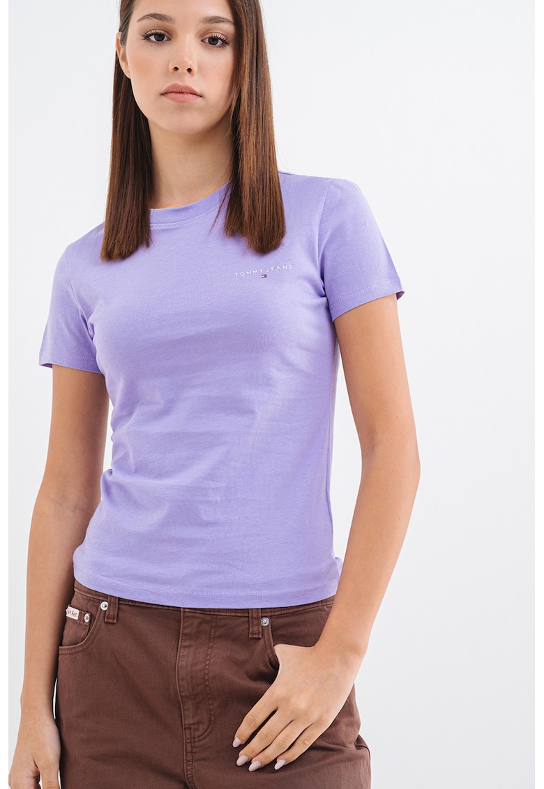 Caracteristici Culoare: lila Imprimeu: uni Material: bumbac Croiala: slim fit Model: decolteu la baza gatului Lungime maneca: maneca scurta Detalii: detaliu cu logo Compozitie Exterior: 100% bumbac Info model Modelul poarta un produs de marimea S. Marimi model: 174 cm inaltime
