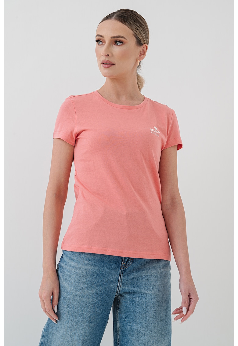 Caracteristici Culoare: coral Imprimeu: uni Material: bumbac Croiala: slim fit Model: rotund Lungime maneca: maneca scurta Detalii: logo discret Compozitie Exterior: 100% bumbac Info model Modelul poarta un produs de marimea S. Marimi model: 174 cm inaltime
