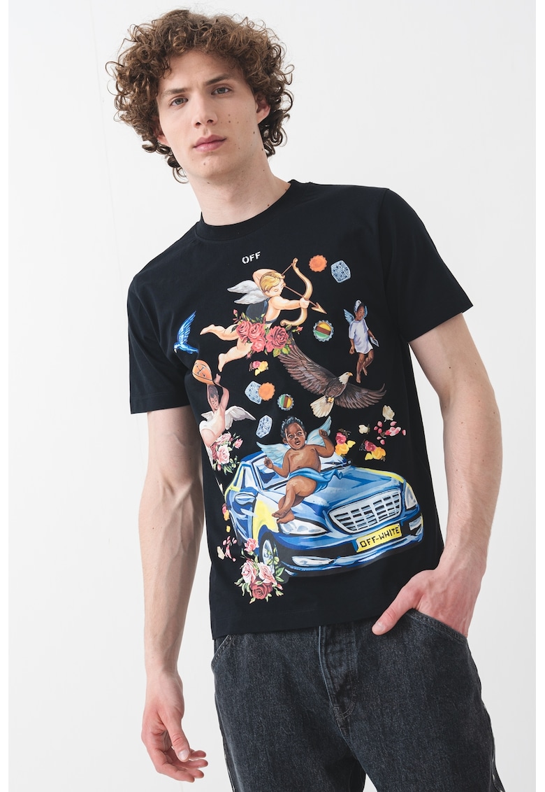 - maro fango Imprimeu: grafic Material: bumbac Croiala: slim fit Model: decolteu la baza gatului Lungime maneca: maneca scurta Compozitie Exterior: 100% bumbac Info model Modelul poarta un produs de marimea M. Marimi model: 190 cm inaltime