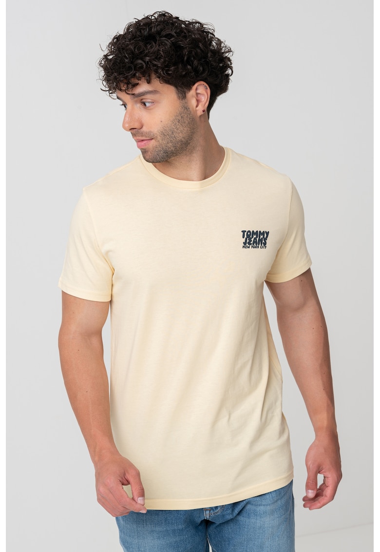 Caracteristici Culoare: galben pai Imprimeu: uni Material: bumbac Croiala: slim fit Model: decolteu la baza gatului Lungime maneca: maneca scurta Compozitie Exterior: 100% bumbac Info model Modelul poarta un produs de marimea M. Marimi model: 179 cm inaltime