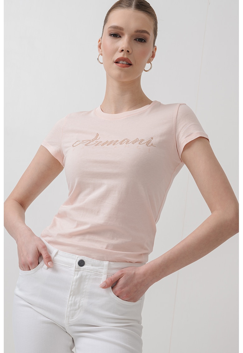 - auriu rose Imprimeu: logo Material: bumbac Croiala: slim fit Model: decolteu la baza gatului Lungime maneca: maneca scurta Compozitie Exterior: 100% bumbac Info model Modelul poarta un produs de marimea S. Marimi model: 176 cm inaltime
