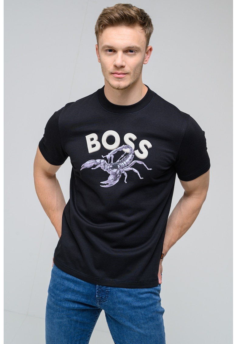 Caracteristici Culoare: negru Imprimeu: logo Material: bumbac Croiala: slim fit Model: decolteu la baza gatului Lungime maneca: maneca scurta Compozitie Exterior: 100% bumbac Info model Modelul poarta un produs de marimea M. Marimi model: 191 cm inaltime