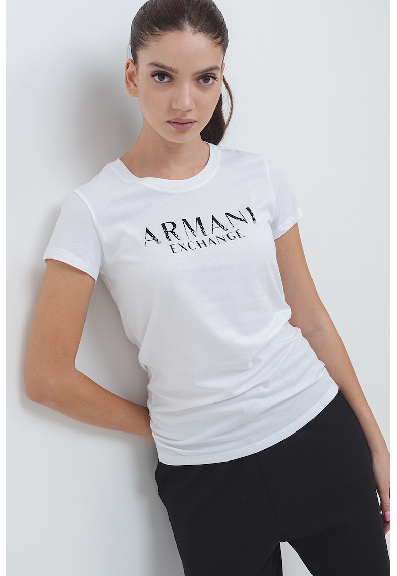 - negru Imprimeu: logo Material: bumbac Croiala: slim fit Model: rotund Lungime maneca: maneca scurta Detalii: aplicatie cu strasuri Compozitie Exterior: 100% bumbac Info model Modelul poarta un produs de marimea S. Marimi model: 175 cm inaltime