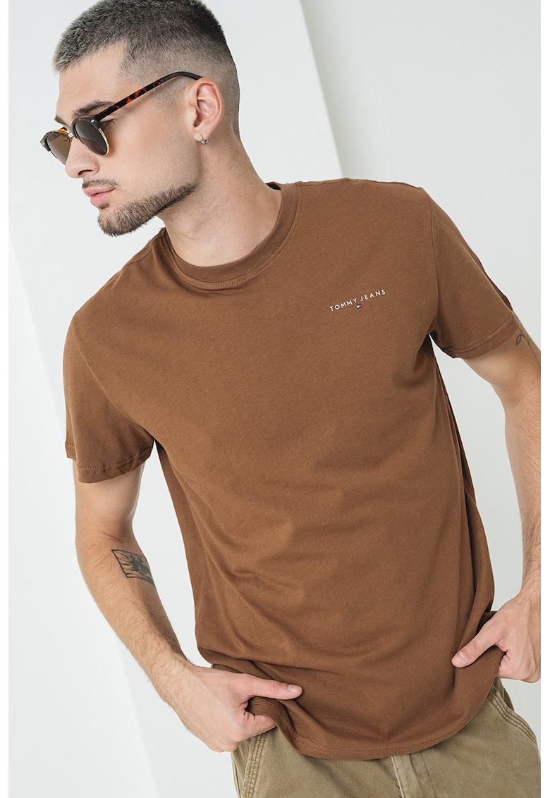 Caracteristici Culoare: maro Imprimeu: uni Material: bumbac Croiala: slim fit Model: decolteu la baza gatului Lungime maneca: maneca scurta Compozitie Exterior: 100% bumbac Info model Modelul poarta un produs de marimea M. Marimi model: 190 cm inaltime