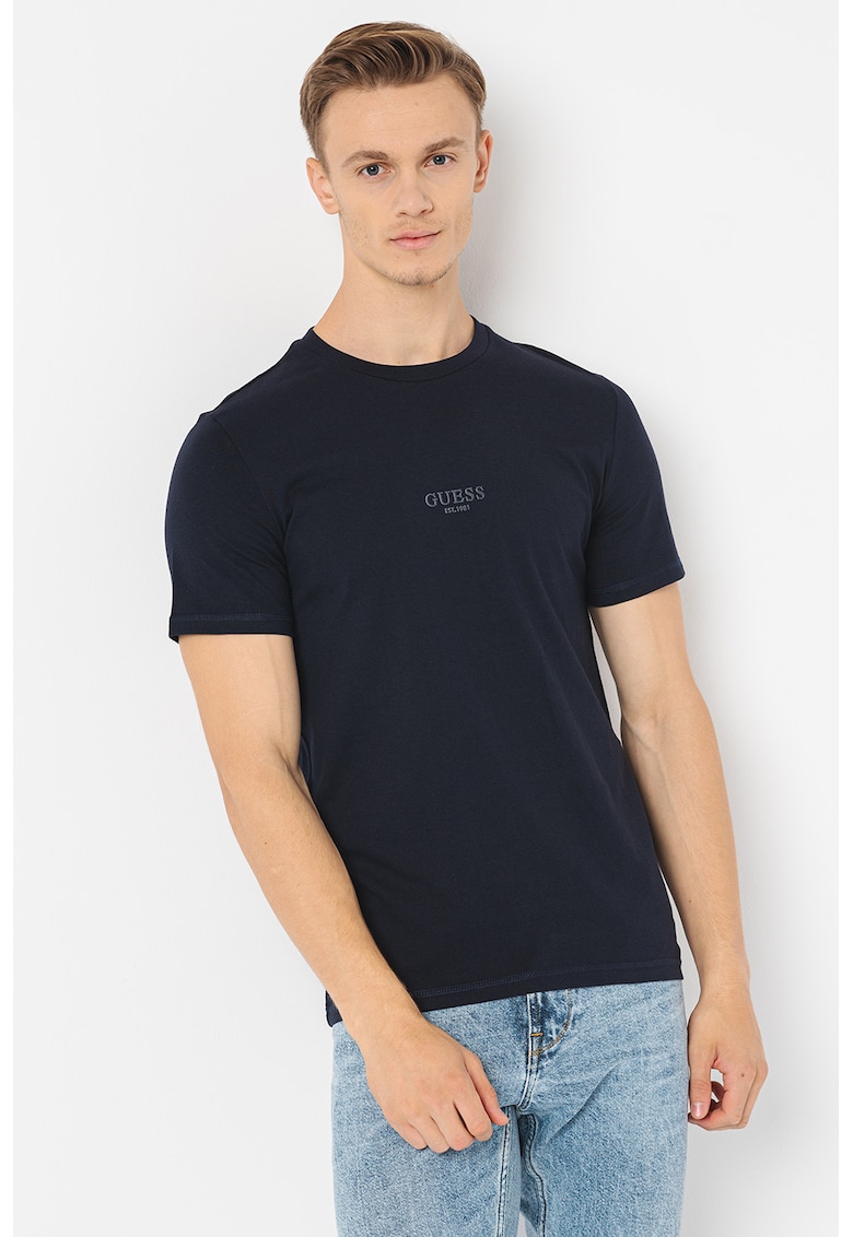 Caracteristici Culoare: albastru ultramarin Imprimeu: uni Material: bumbac Croiala: slim fit Model: decolteu la baza gatului Lungime maneca: maneca scurta Detalii: detaliu cu logo Compozitie Exterior: 100% bumbac Info model Modelul poarta un produs de marimea M. Marimi model: 191 cm inaltime