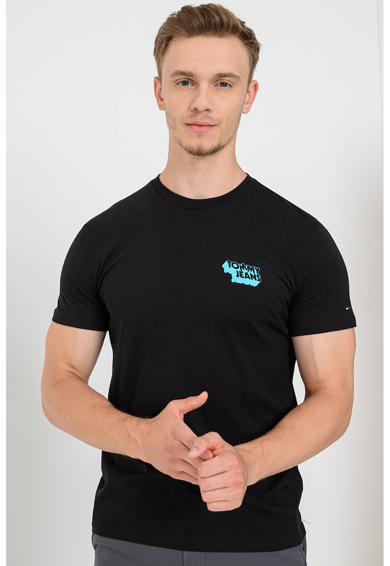 - albastru Imprimeu: logo Material: bumbac Croiala: slim fit Model: decolteu la baza gatului Lungime maneca: maneca scurta Compozitie Exterior: 100% bumbac Info model Modelul poarta un produs de marimea M. Marimi model: 191 cm inaltime