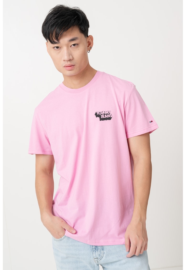 Caracteristici Culoare: roz pastel Imprimeu: logo Material: bumbac Croiala: slim fit Model: decolteu la baza gatului Lungime maneca: maneca scurta Compozitie Exterior: 100% bumbac regenerativ Info model Modelul poarta un produs de marimea M. Marimi model: 183 cm inaltime