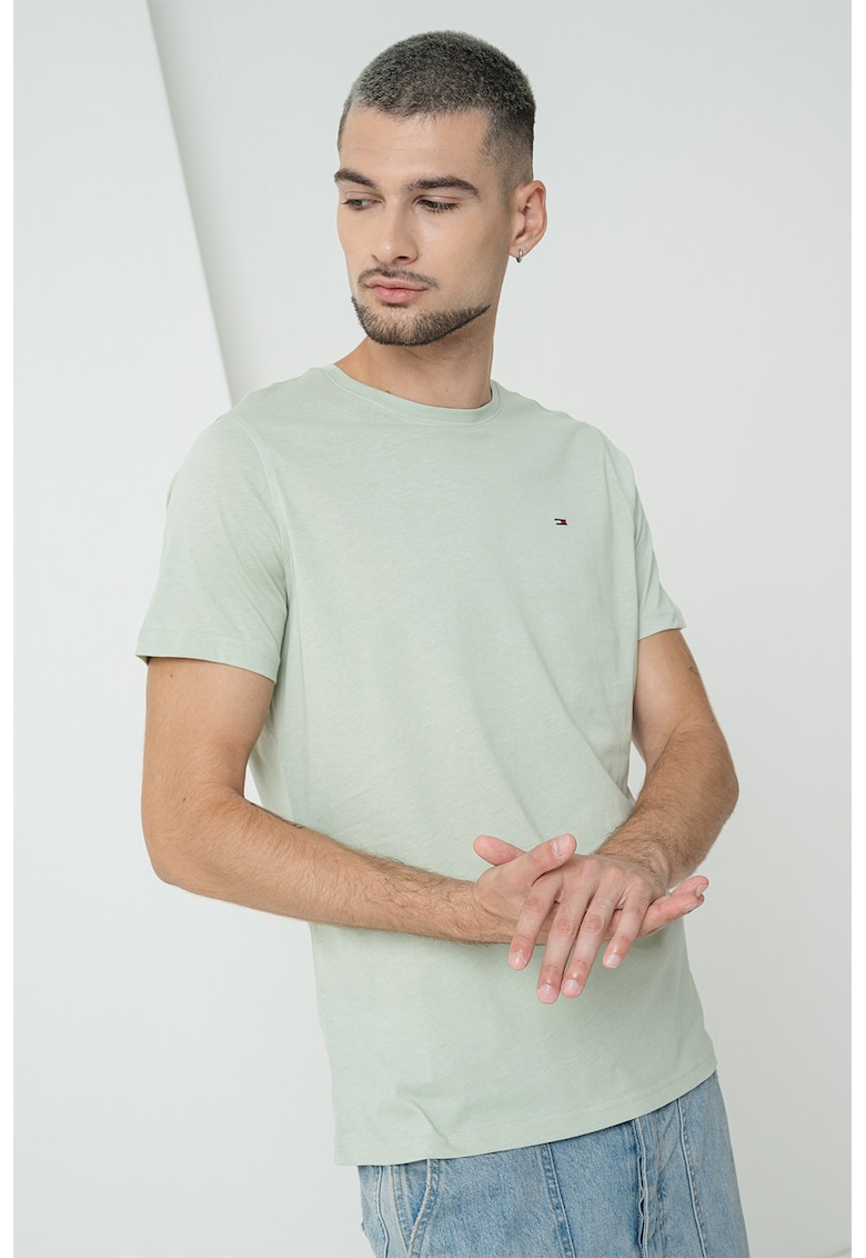 Caracteristici Culoare: verde pal Imprimeu: uni Material: bumbac Croiala: slim fit Model: decolteu la baza gatului Lungime maneca: maneca scurta Compozitie Exterior: 100% bumbac Info model Modelul poarta un produs de marimea M. Marimi model: 190 cm inaltime