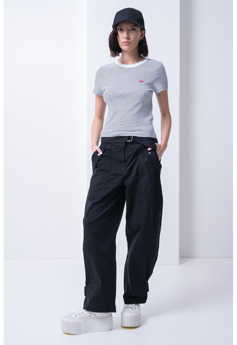 - bleumarin Imprimeu: dungi Material: bumbac Croiala: slim fit Model: decolteu la baza gatului Lungime maneca: maneca scurta Compozitie Exterior: 96% bumbac