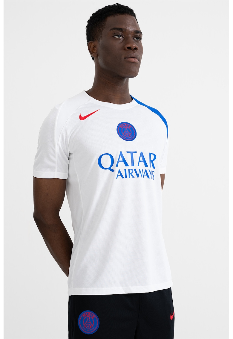 - albastru royal Imprimeu: logo Croiala: slim fit Stil decolteu: rotund Material: fibre sintetice Tehnologie material: dri-fit Echipa: paris saint germain Detalii material Exterior: 100% poliester Info model Modelul poarta un produs de marimea M. Marimi model: 184 cm inaltime