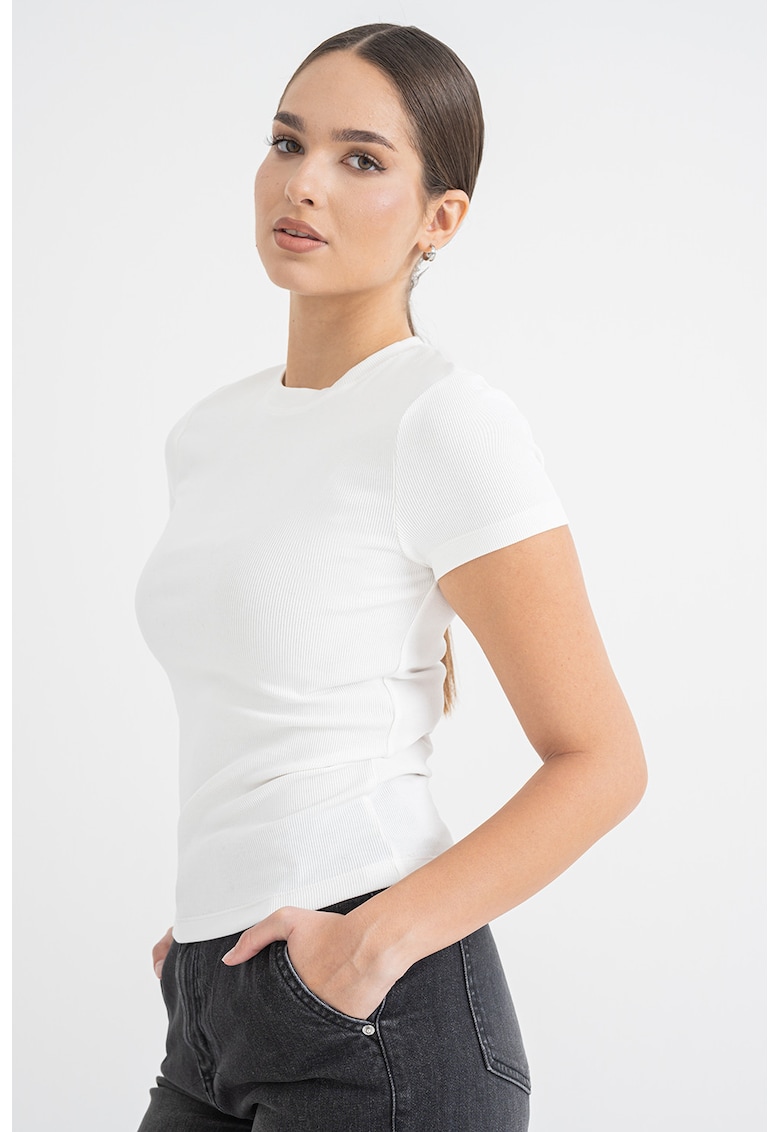 Caracteristici Culoare: alb optic Imprimeu: uni Material: bumbac Croiala: slim fit Model: decolteu la baza gatului Lungime maneca: maneca scurta Compozitie Exterior: 95% bumbac