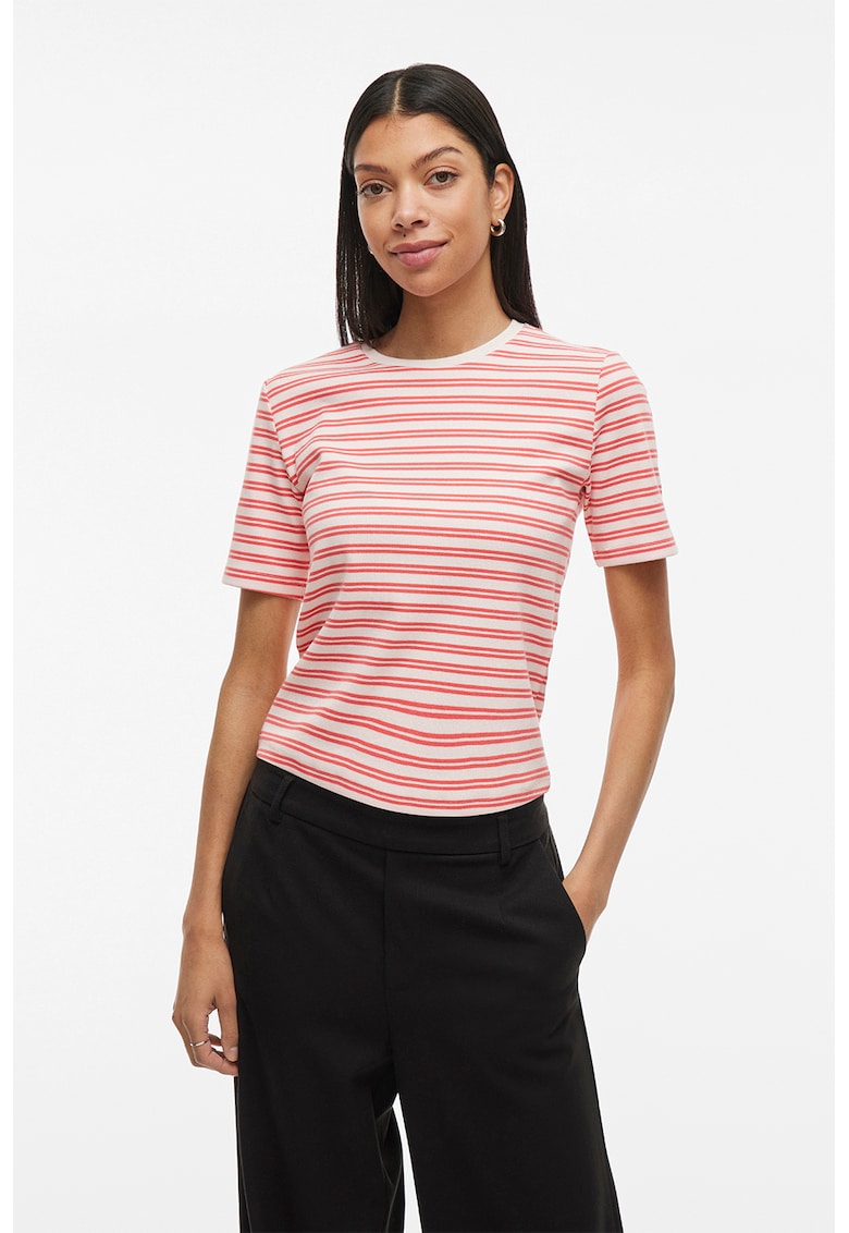 - bumbac organic Croiala: regular fit Model: decolteu la baza gatului Lungime maneca: maneca scurta Detalii: aspect striat Compozitie Exterior: 57% bumbac organic