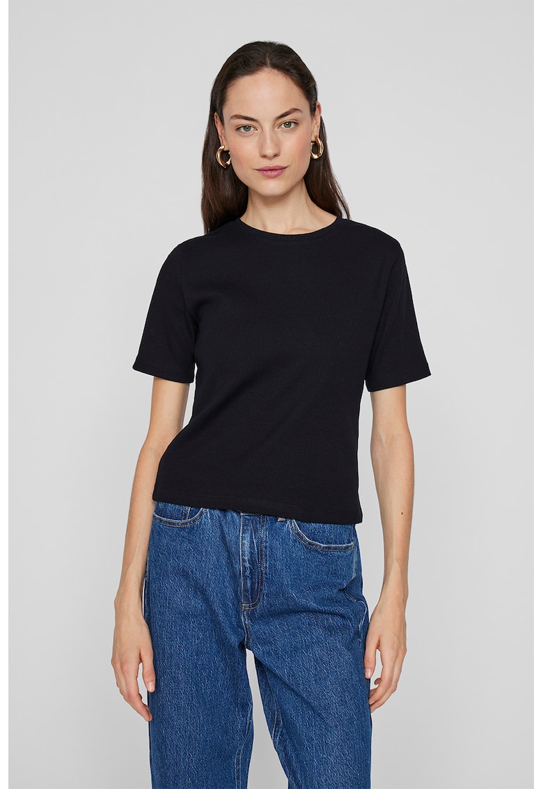 - bumbac organic Croiala: regular fit Model: decolteu la baza gatului Lungime maneca: maneca scurta Detalii: aspect striat Compozitie Exterior: 57% bumbac organic