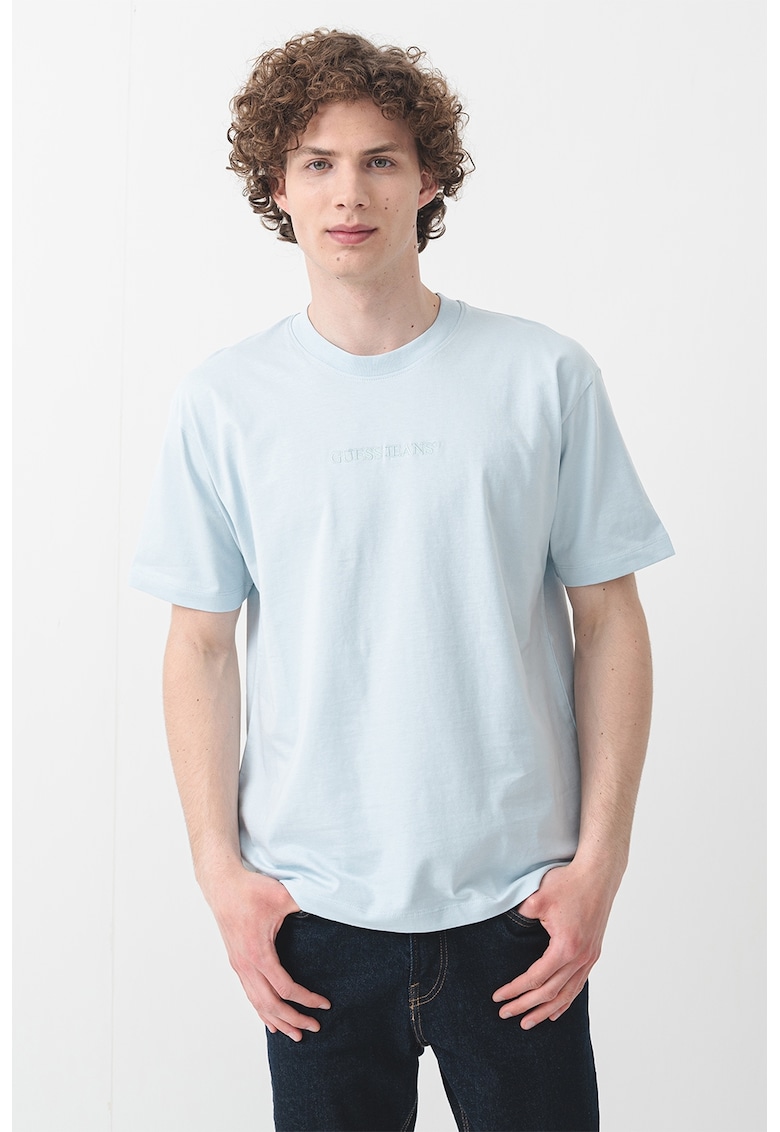 Caracteristici Culoare: albastru deschis Imprimeu: uni Material: bumbac Croiala: supradimensionat Model: decolteu la baza gatului Lungime maneca: maneca scurta Compozitie Exterior: 100% bumbac Info model Modelul poarta un produs de marimea M. Marimi model: 190 cm inaltime