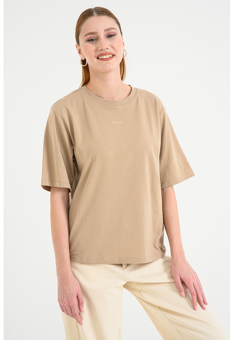 Caracteristici Culoare: camel Imprimeu: uni Material: bumbac Croiala: supradimensionat Model: decolteu la baza gatului Lungime maneca: maneca scurta Compozitie Exterior: 100% bumbac Info model Modelul poarta un produs de marimea S. Marimi model: 180 cm inaltime