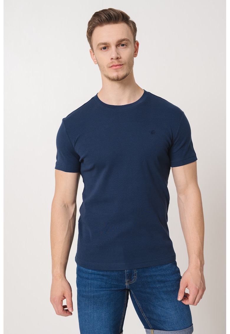 Caracteristici Culoare: bleumarin Imprimeu: uni Material: bumbac Croiala: regular fit Model: decolteu la baza gatului Lungime maneca: maneca scurta Compozitie Exterior: 100% bumbac Info model Modelul poarta un produs de marimea M. Marimi model: 191 cm inaltime