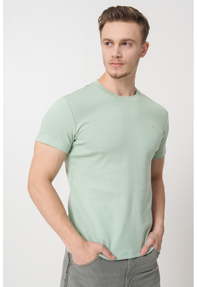 Caracteristici Culoare: verde menta Imprimeu: uni Material: bumbac Croiala: regular fit Model: decolteu la baza gatului Lungime maneca: maneca scurta Compozitie Exterior: 100% bumbac Info model Modelul poarta un produs de marimea M. Marimi model: 191 cm inaltime