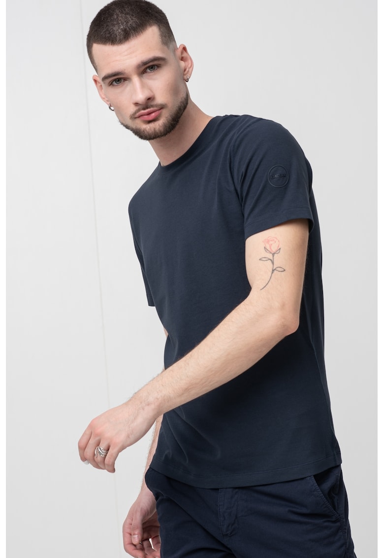 Caracteristici Culoare: bleumarin Imprimeu: uni Material: bumbac Croiala: regular fit Model: decolteu la baza gatului Lungime maneca: maneca scurta Compozitie Exterior: 95% bumbac