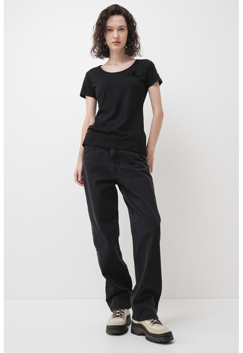 Caracteristici Culoare: negru Imprimeu: uni Material: bumbac Croiala: regular fit Model: rotund Lungime maneca: maneca scurta Compozitie Exterior: 100% bumbac Info model Modelul poarta un produs de marimea S. Marimi model: 177 cm inaltime