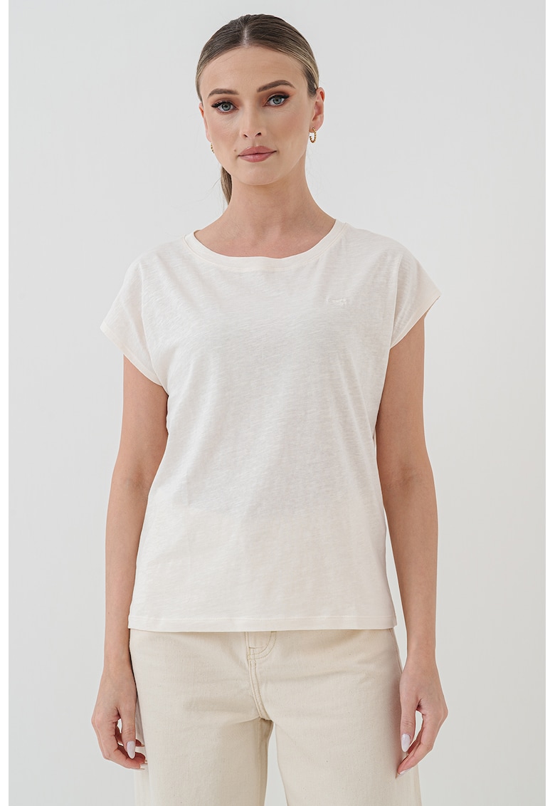 Caracteristici Culoare: alb murdar Imprimeu: uni Material: bumbac Croiala: regular fit Model: rotund Lungime maneca: maneca scurta Compozitie Exterior: 100% bumbac Info model Modelul poarta un produs de marimea S. Marimi model: 174 cm inaltime