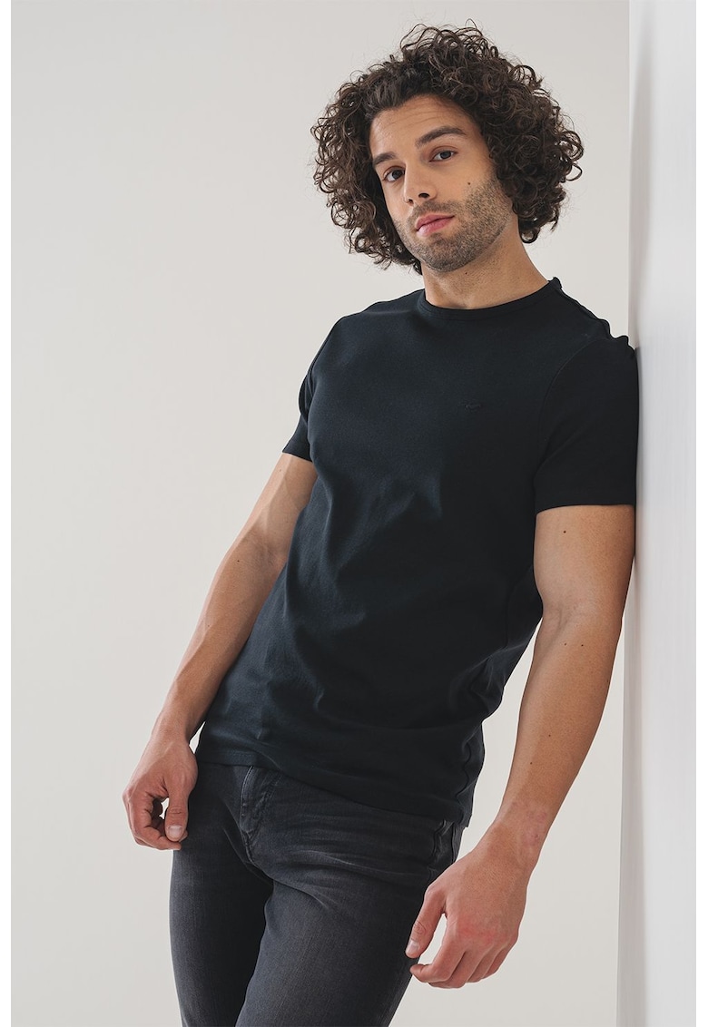 Caracteristici Culoare: negru Imprimeu: uni Material: bumbac Croiala: regular fit Model: decolteu la baza gatului Lungime maneca: maneca scurta Compozitie Exterior: 100% bumbac Info model Modelul poarta un produs de marimea M. Marimi model: 179 cm inaltime