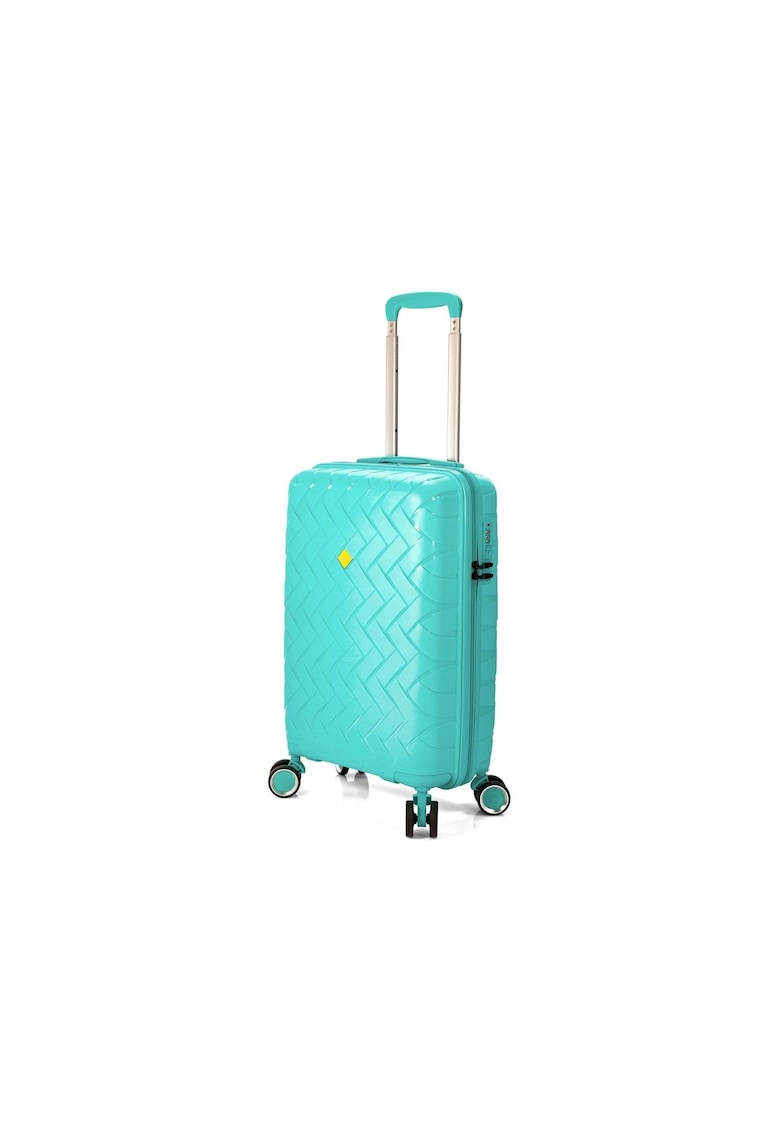 Caracteristici Numar compartimente: 1 Culoare: turcoaz Material: polipropilena Sistem inchidere: fermoar Functii: 4 roti duble Numar roti: 4 Tip compartimente: 1 x compartiment principal Detalii: maner telescopic
