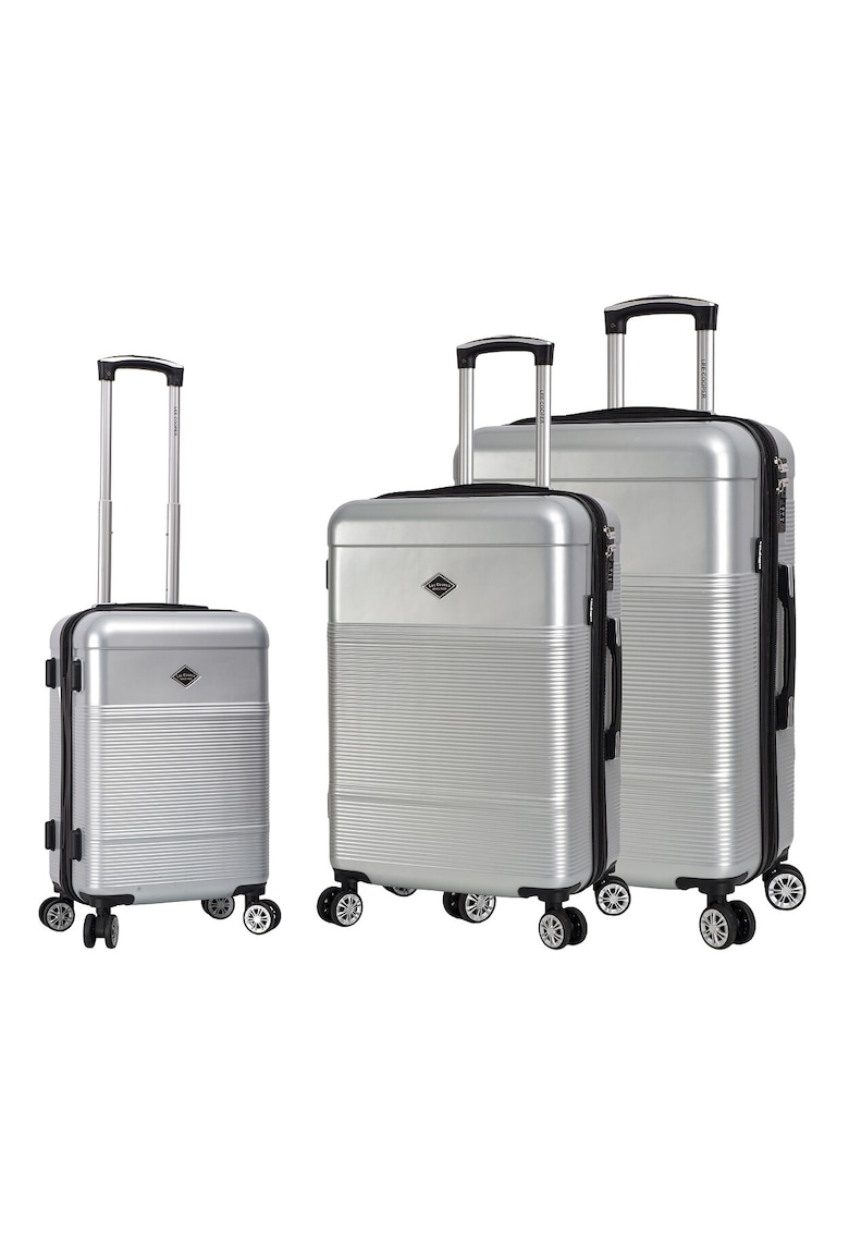 Caracteristici Numar compartimente: 1 Culoare: argintiu Material: policarbonat Sistem inchidere: fermoar Functii: 1 compartiment principal Numar roti: 4 Tip compartimente: 1 compartiment mare cu fermoar Detalii: maner telescopic
