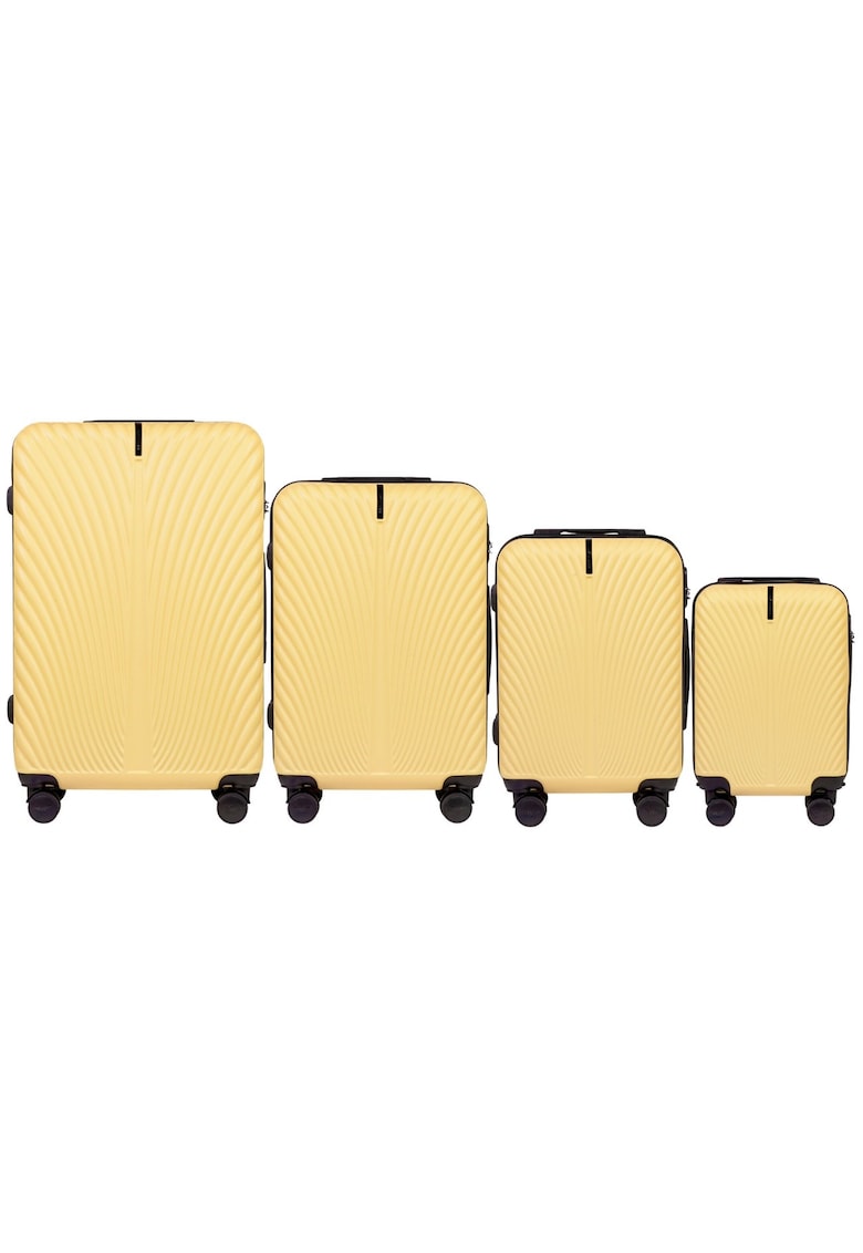 - bretele interioare pentru fixare Numar roti: 4 Tip compartimente: 1 x compartiment principal Detalii: cifru Tip incuietoare: cifru Compozitie Exterior: abs Captuseala: textil Dimensiuni Capacitate: 38 l Adancime: 21.5 cm Latime: 38 cm Inaltime: 55.5 cm Greutate: 2.5 kg