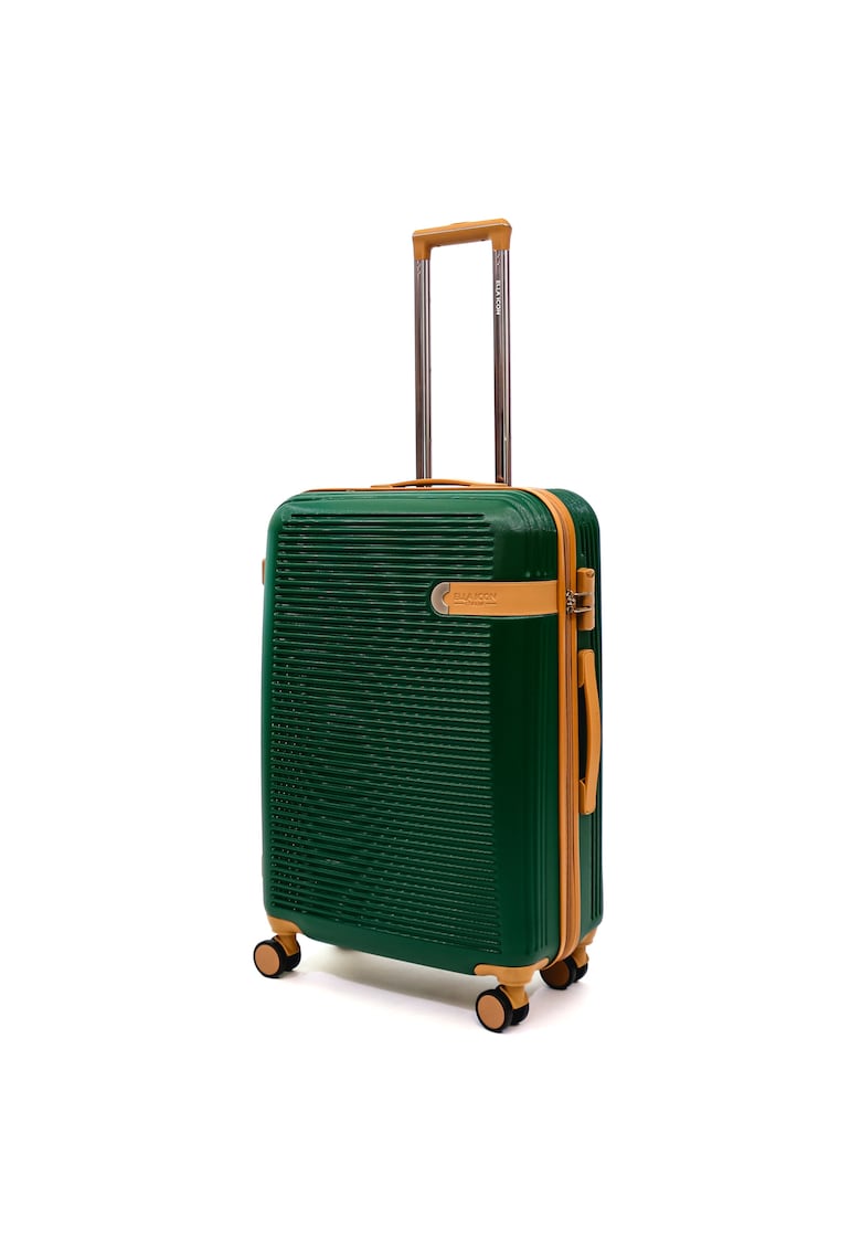 Caracteristici Numar compartimente: 2 Culoare: verde Material: abs Sistem inchidere: fermoar Functii: 2 manere Numar roti: 4 Tip compartimente: bretele elastice in forma de x Detalii: maner superior si lateral Tip incuietoare: cifru Compozitie Exterior: 100% abs Captuseala: 100% poliester Dimensiuni Capacitate: 84 l Adancime: 24 cm Latime: 49 cm Inaltime: 72 cm Greutate: 4 kg