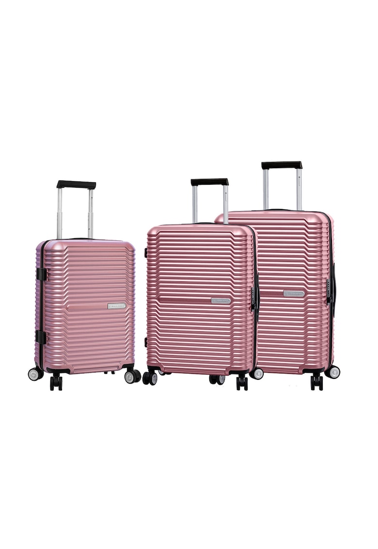 Caracteristici Culoare: rose Material: policarbonat Sistem inchidere: fermoar Numar roti: 4 Tip compartimente: 1 x compartiment principal Detalii: maner telescopic