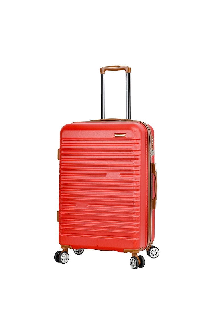 Caracteristici Numar compartimente: 1 Culoare: rosu Material: abs Sistem inchidere: fermoar Functii: 1 compartiment principal Numar roti: 4 Tip compartimente: 1 compartiment mare cu fermoar Detalii: maner telescopic