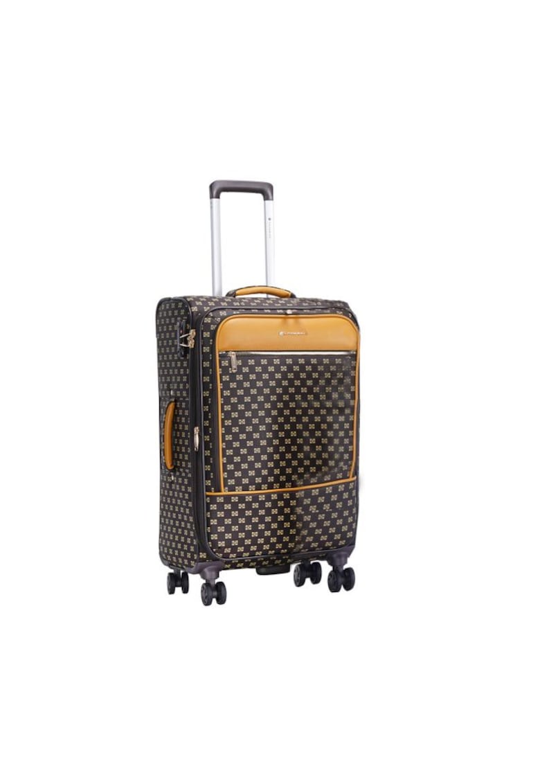 Caracteristici Numar compartimente: 3 Culoare: maro Material: pvc Sistem inchidere: fermoar Numar roti: 4 Tip compartimente: compartiment principal Detalii: maner telescopic