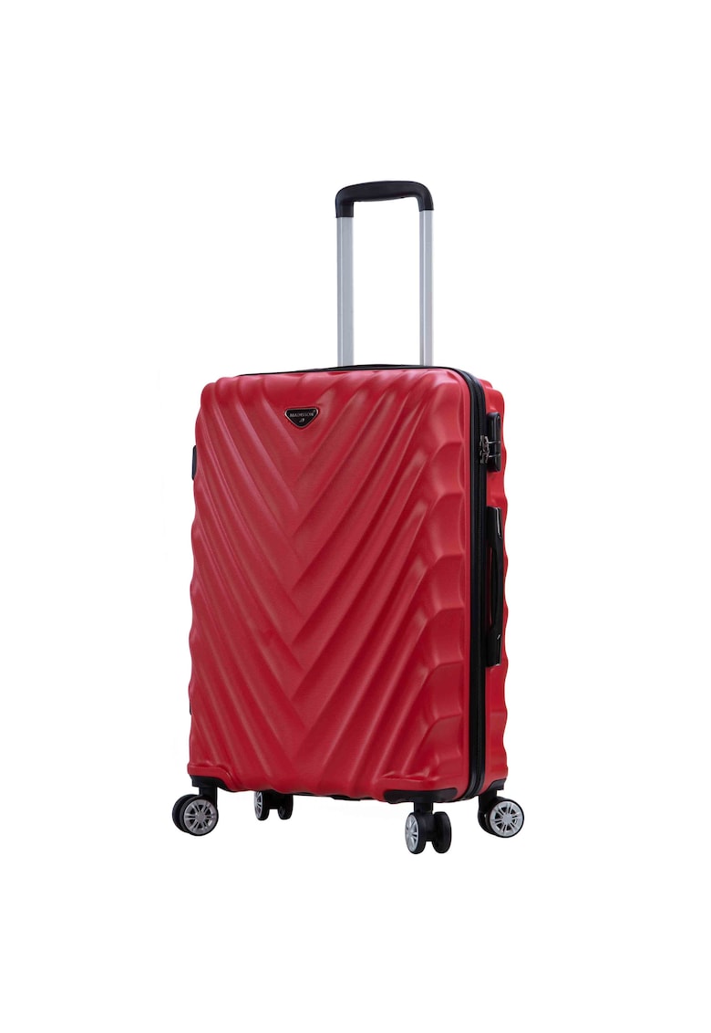 Caracteristici Numar compartimente: 1 Culoare: rosu Material: abs Sistem inchidere: fermoar Numar roti: 4 Tip compartimente: 1 x compartiment principal Detalii: maner telescopic
