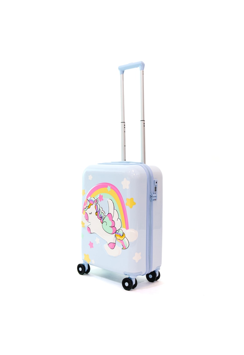 Caracteristici Culoare: albastru Material: policarbonat Sistem inchidere: fermoar Numar roti: 4 Tip compartimente: principal Detalii: maner telescopic Tip incuietoare: cifru Compozitie Exterior: policarbonat Dimensiuni Capacitate: 52 l Adancime: 24 cm Latime: 40 cm Inaltime: 55 cm Greutate: 2.9 kg