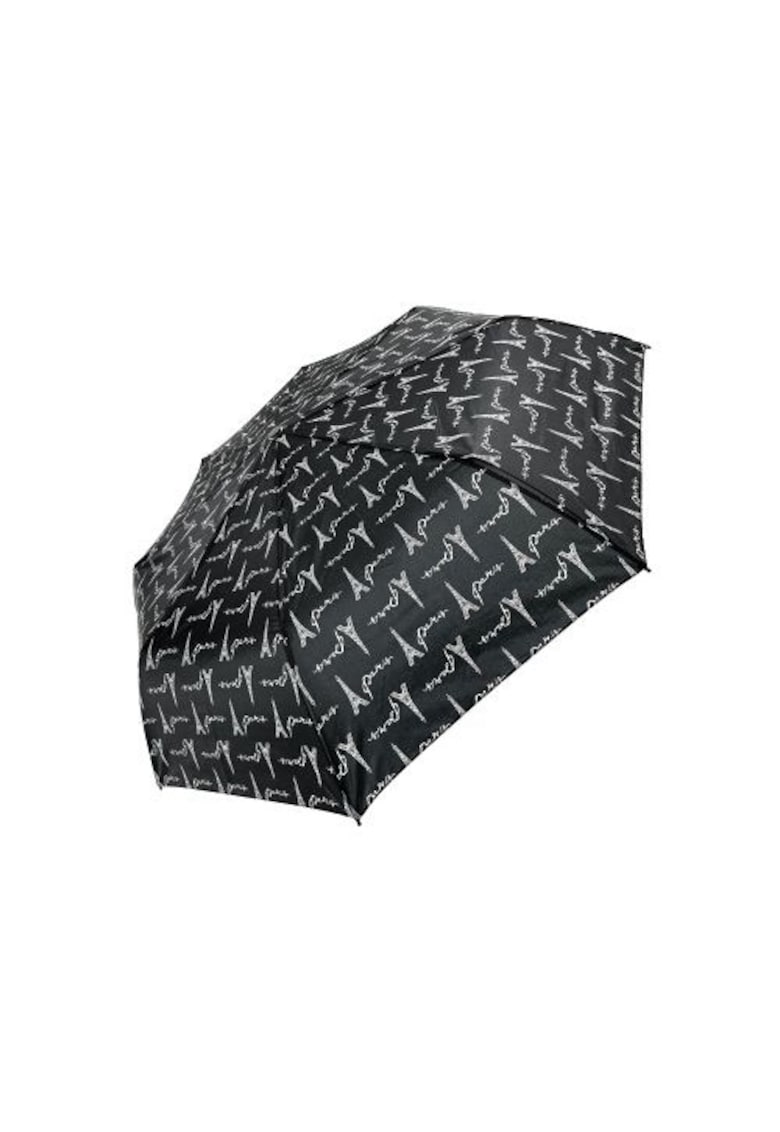 Caracteristici generale Stil: umbrele mini Tip: pliabila Tip pliere: manual Caracteristici cheie: husa inclusa Culoare: negru Imprimeu: paris Detalii: husa asortata Material Material acoperitoare: poliester Material cadru: metal Material maner: plastic Dimensiuni Greutate: 230 g Diametru (deschisa): 98 cm Lungime (inchisa): 24 cm