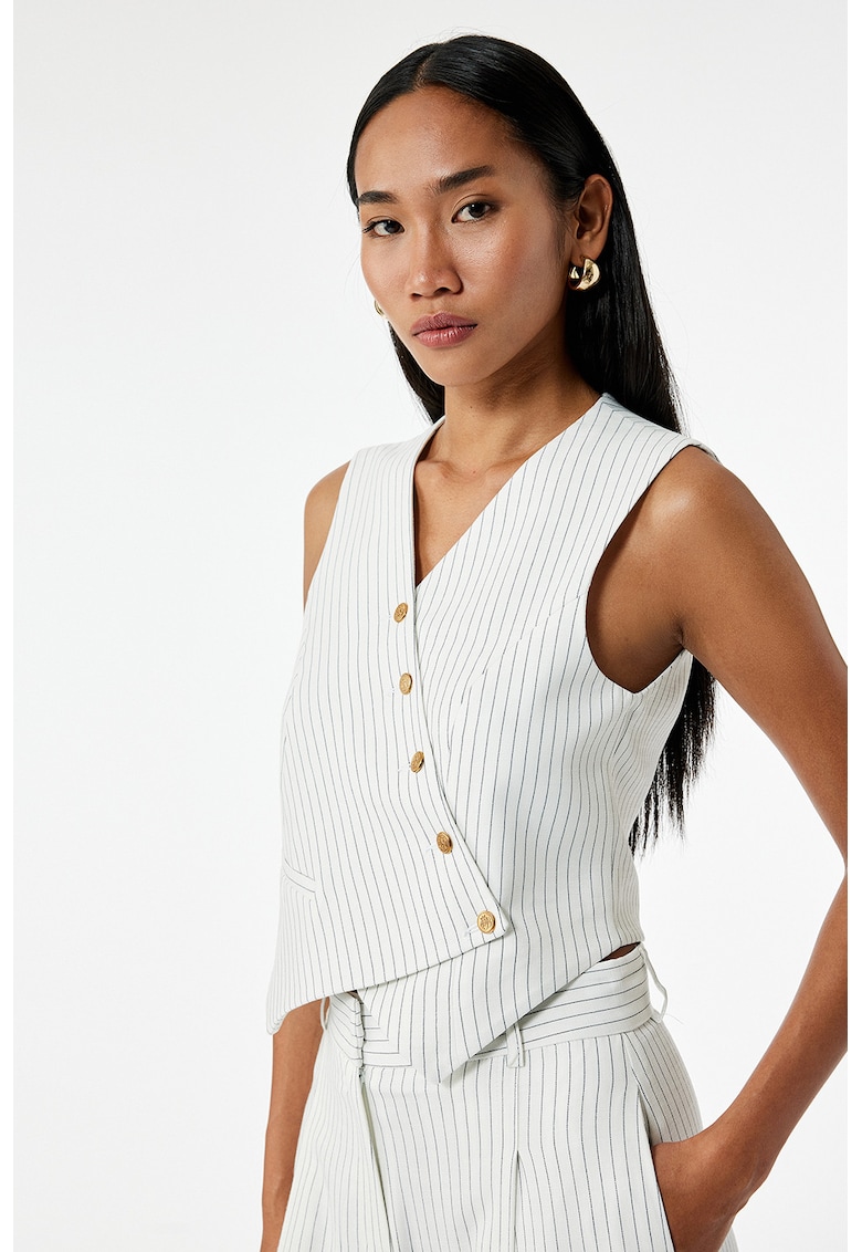 - viscoza Imprimeu: dungi Lungime maneca: fara maneca Detalii: design asimetric