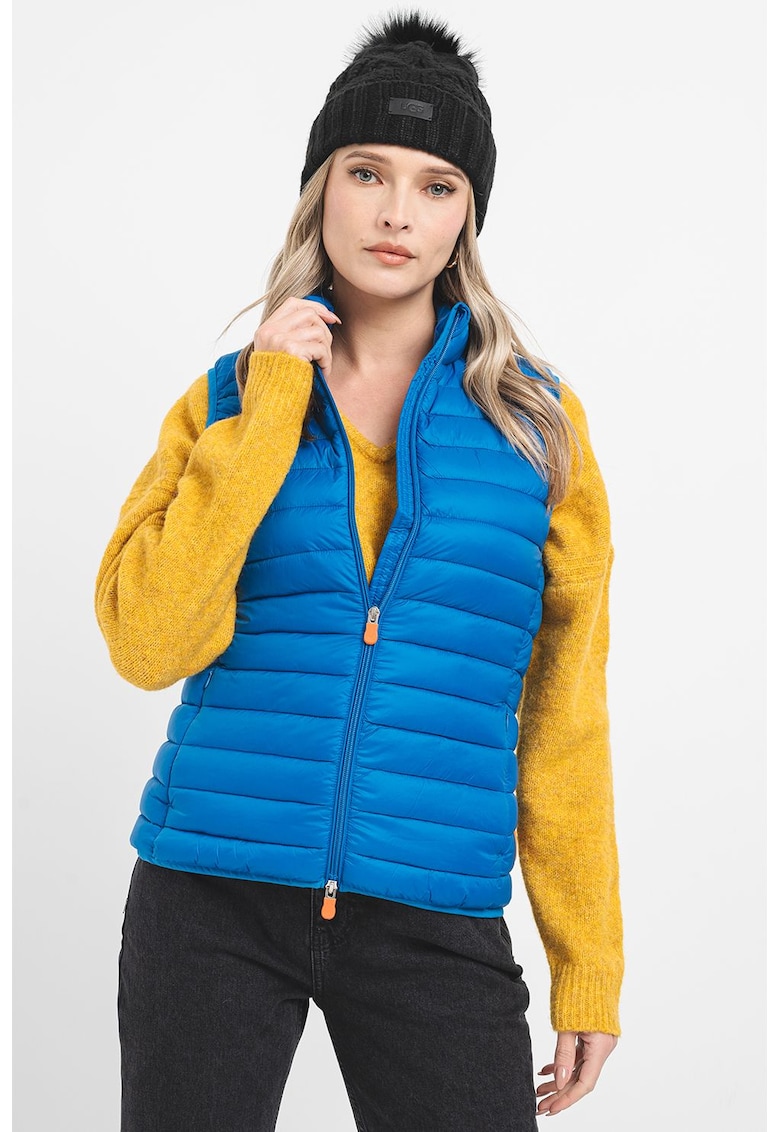 Caracteristici Tip produs: vesta Culoare: albastru royal Imprimeu: uni Material: poliamida Croiala: regular fit Guler: scurt Gluga: fara gluga Lungime maneca: fara maneca Buzunare: laterale Detalii: matlasat