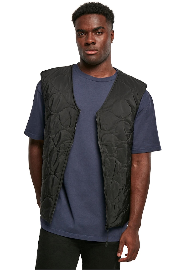 Caracteristici Tip produs: vesta Culoare: negru Material: sintetic Croiala: regular fit Imprimeu: uni Gluga: fara gluga Lungime maneca: fara maneca Detalii: aspect matlasat Sistem inchidere: fermoar Compozitie Exterior: 100% poliester Captuseala: 100% poliester Umplutura: 100% poliester