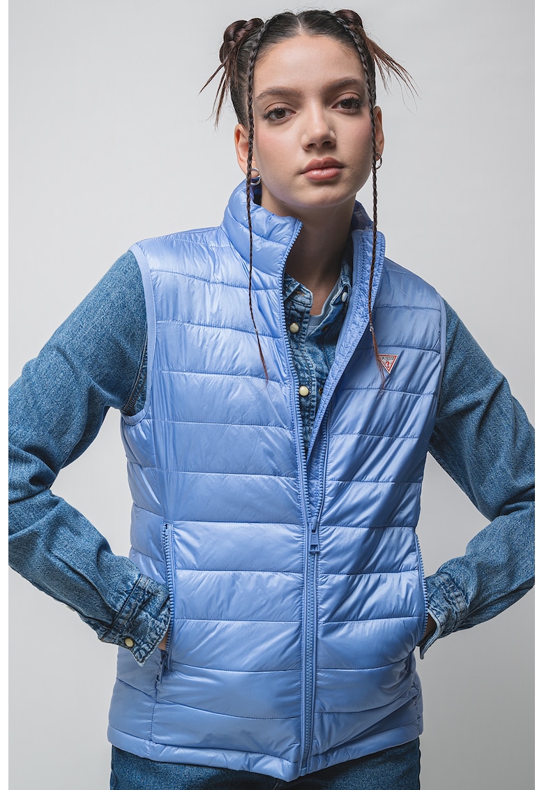 Caracteristici Tip produs: vesta Culoare: albastru pastel Imprimeu: uni Material: sintetic Croiala: regular fit Gluga: fara gluga Lungime maneca: fara maneca Buzunare: 2 oblice Detalii: aspect matlasat