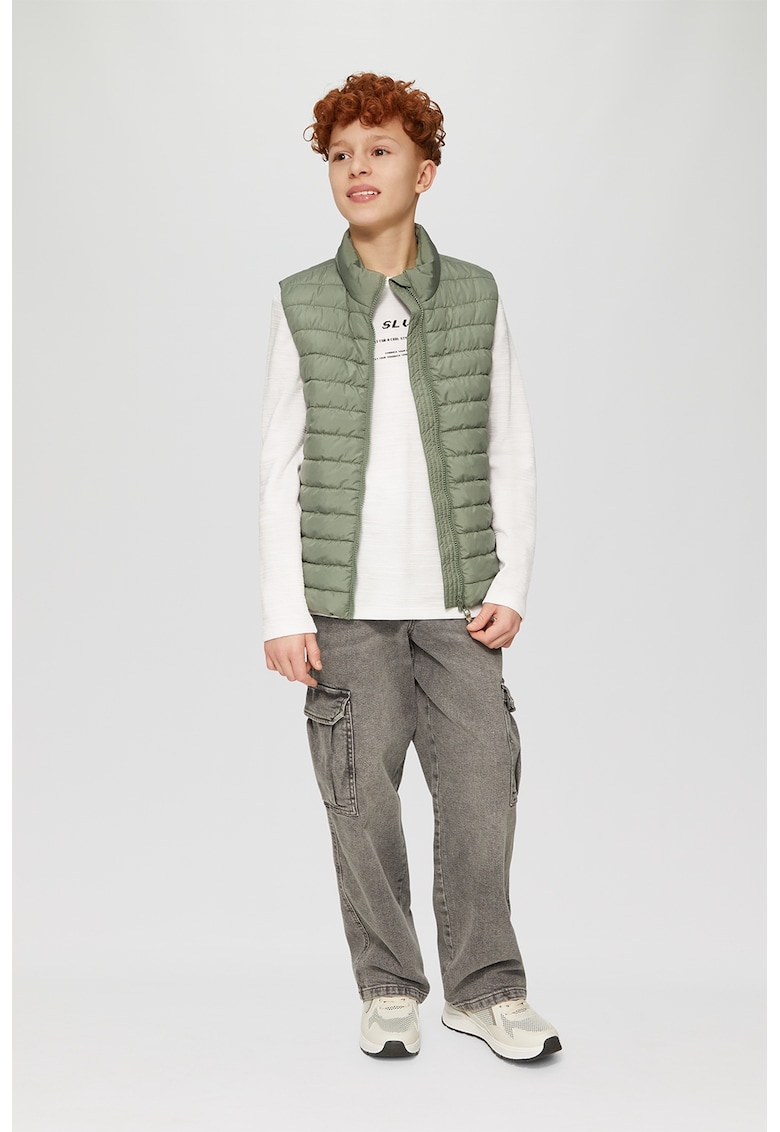 Caracteristici Tip produs: vesta Culoare: verde masliniu Imprimeu: uni Croiala: regular fit Material: sintetic Buzunare: 2 oblice Lungime maneca: fara maneca Detalii: aspect matlasat Sistem inchidere: fermoar Colectie: primavara