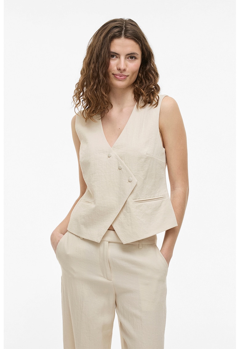 - viscoza Imprimeu: uni Guler: decolteu cache-coeur Lungime maneca: fara maneca Sistem inchidere: nasturi Compozitie Exterior: 75% viscoza lenzing™ ecovero™