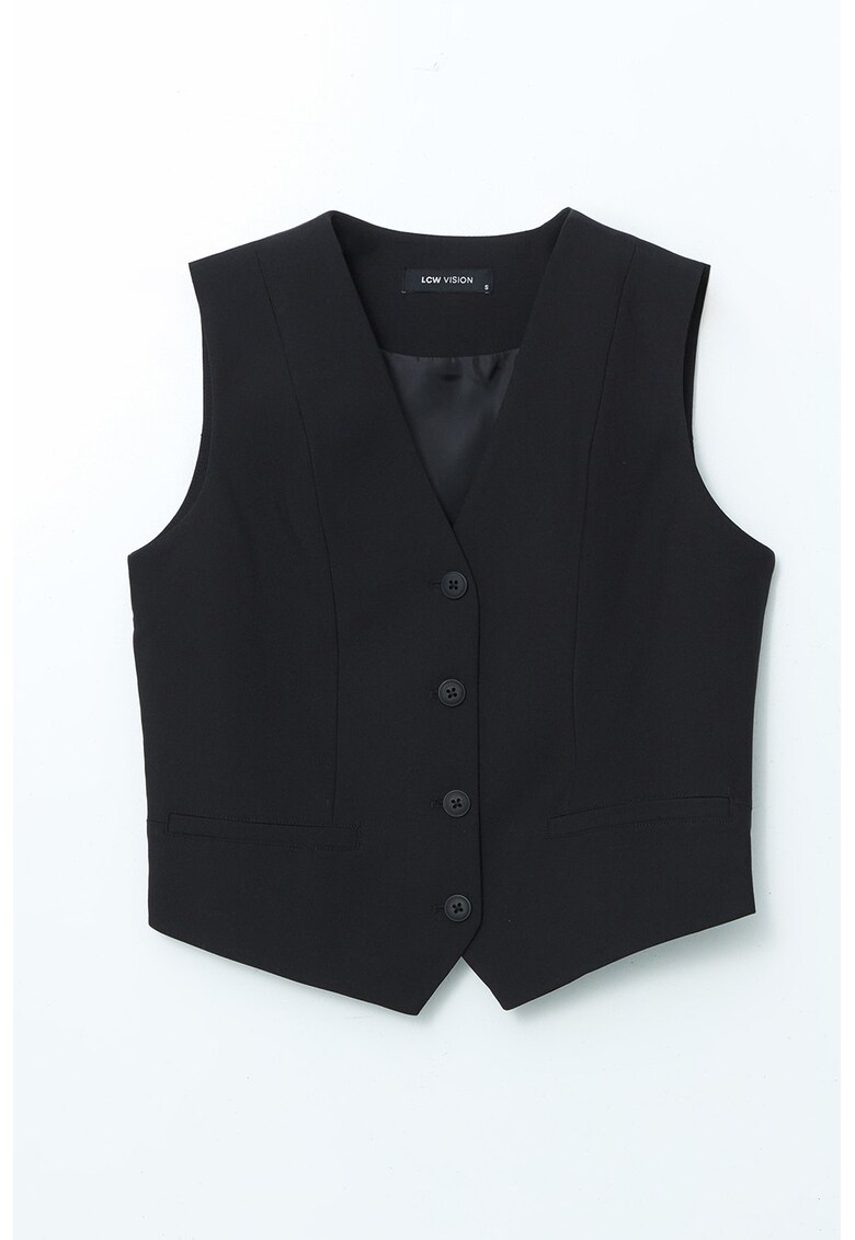 - viscoza Imprimeu: uni Lungime maneca: fara maneca Buzunare: 2 cu refilet Sistem inchidere: nasturi Compozitie Exterior: 79% poliester