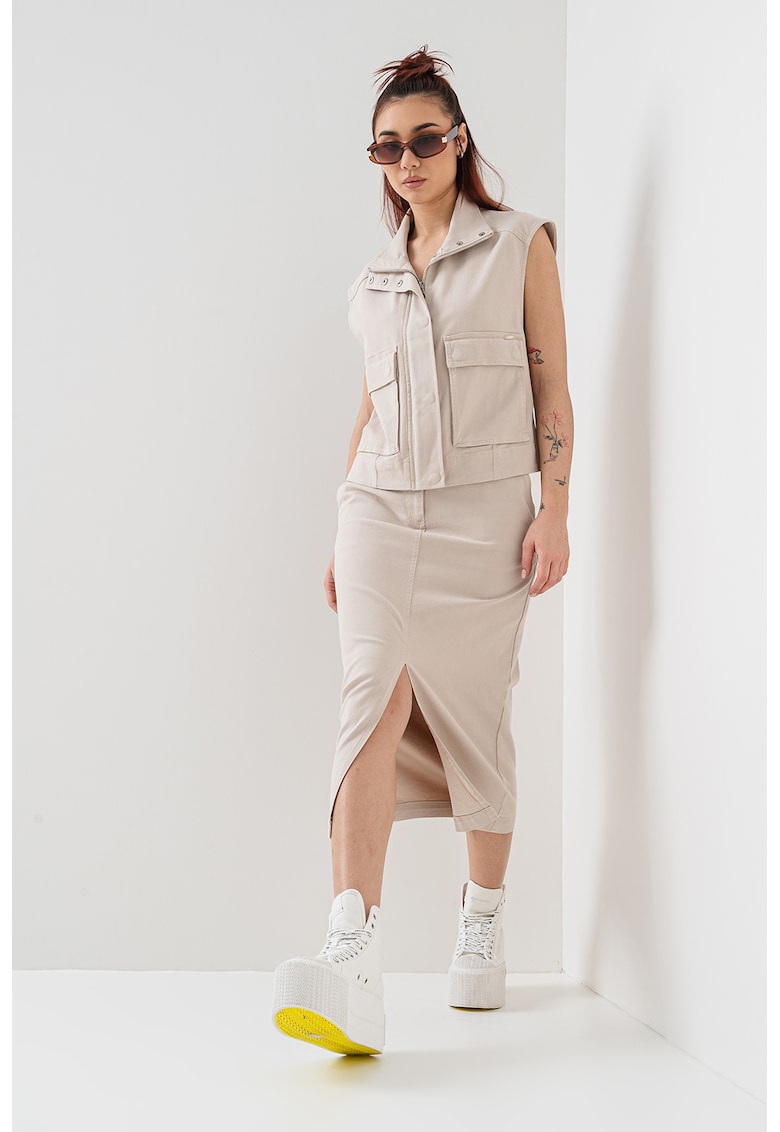 Caracteristici Tip produs: vesta Culoare: crem Imprimeu: uni Material: bumbac Buzunare: 2 Sistem inchidere: fermoar