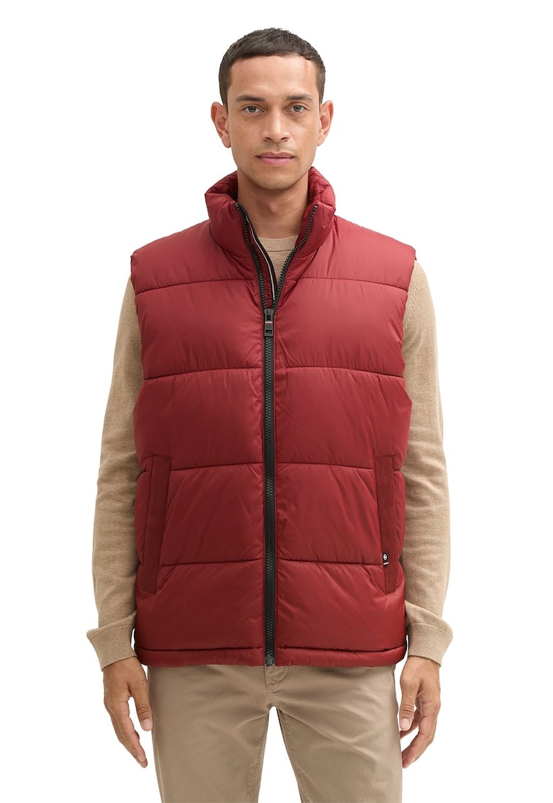 Caracteristici Tip produs: vesta Culoare: rosu inchis Material: poliester Croiala: regular fit Imprimeu: uni Gluga: fara gluga Guler: mediu Lungime maneca: fara maneca Buzunare: 2 laterale Sistem inchidere: fermoar Compozitie Exterior: 100% poliester