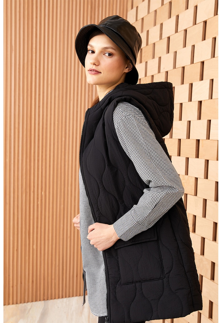 Caracteristici Tip produs: vesta Culoare: negru Imprimeu: uni Material: poliamida Croiala: regular fit Gluga: cu gluga Lungime maneca: fara maneca Buzunare: 2 cu clapa Sistem inchidere: fermoar Compozitie Exterior: 100% poliamida Captuseala: 100% poliester Umplutura: 100% poliester