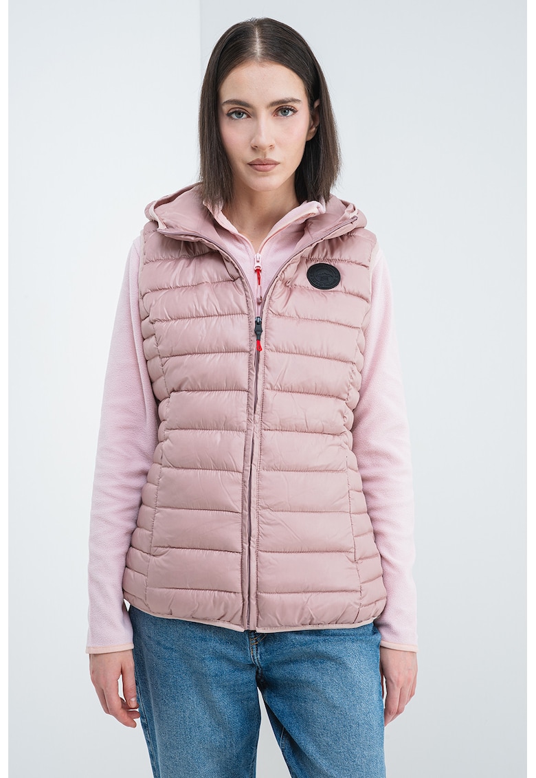Caracteristici Tip produs: vesta Culoare: bleumarin Imprimeu: uni Material: poliester Croiala: regular fit Gluga: cu gluga Lungime maneca: fara maneca Buzunare: laterale Sistem inchidere: fermoar Compozitie Exterior: 100% poliester Info model Modelul poarta un produs de marimea S. Marimi model: 174 cm inaltime