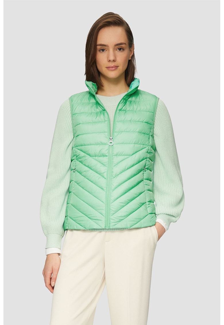 Caracteristici Tip produs: vesta Culoare: verde menta Imprimeu: uni Material: poliester Croiala: regular fit Guler: inalt Gluga: fara gluga Lungime maneca: fara maneca Buzunare: buzunare laterale Sistem inchidere: fermoar Compozitie Exterior: 100% poliester