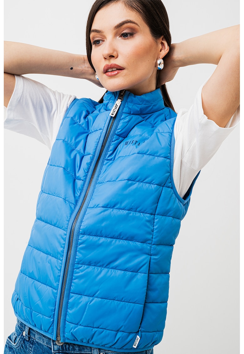 Caracteristici Tip produs: vesta Culoare: albastru azur Imprimeu: logo Material: poliester Croiala: regular fit Guler: inalt Gluga: fara gluga Lungime maneca: fara maneca Buzunare: buzunare laterale Sistem inchidere: fermoar Compozitie Exterior: 100% poliester Info model Modelul poarta un produs de marimea S. Marimi model: 176 cm inaltime